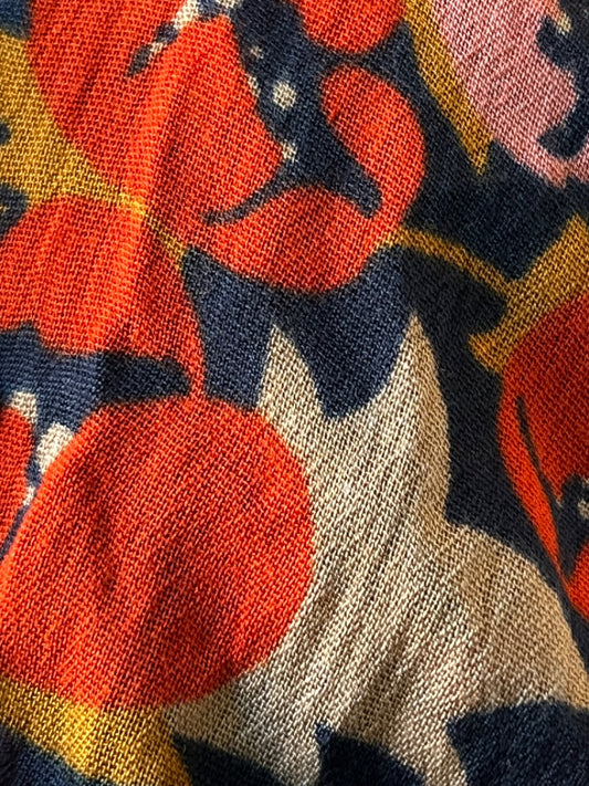 Spartina Navy Pink Orange Floral Scarf Long Fringed 25" x 80"