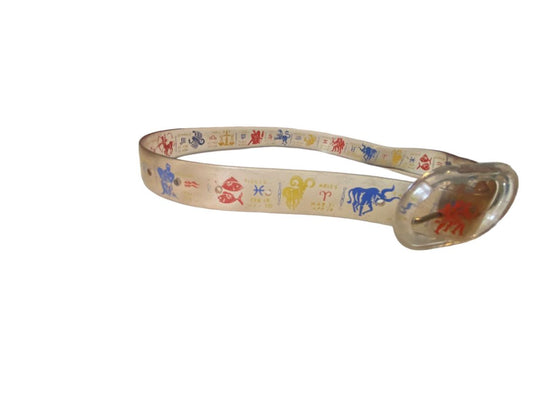 80's Clear Vinyl Rubber Zodiac Sign Belt 30" Long 1" Wide