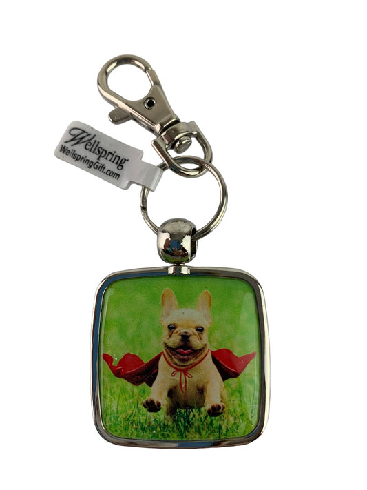Wellspring Set of 2 New "Totally Super" Clip Key Chain Puppy French Bulldog New