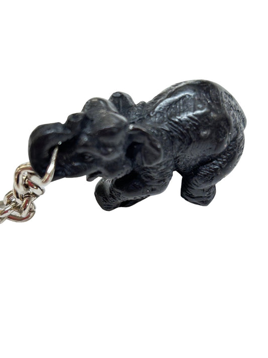 Vintage Black Resin Elephant Keychain Key Ring 2" New