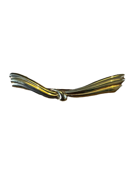 Monet Gold Tone Long Ribbon Brooch pin Knot Bow 4.25" x .50"