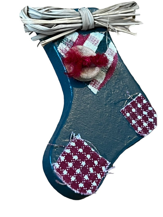 Wooden Handmade Country Christmas Stocking Brooch 2.25" x 1.75"