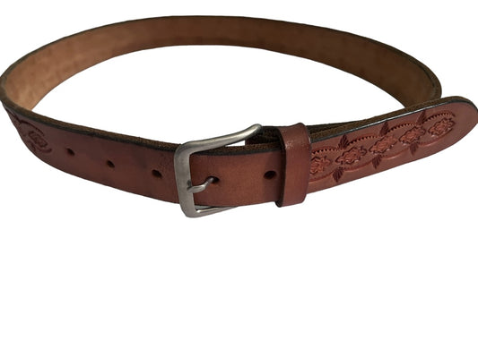 30 Hand Tooled Leather Western Belt Brown Cowboy Anchor Stamped Silver To e Metal Buckle