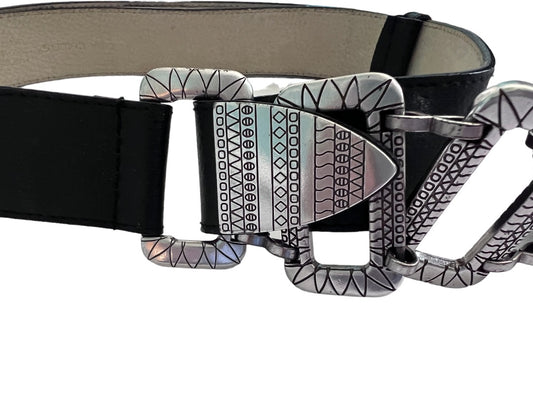 Chico's Black Leather Silver Chain Link Adjustable Slide Belt