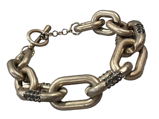 Kenneth Cole Matte Gold Tone Rhinestone Crystal Link Bracelet Toggle Closure