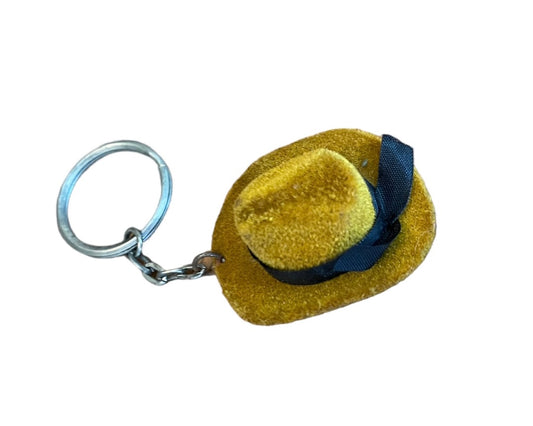 Vintage Flocked Brown Fedora Hat Keychain Key Ring Black Ribbon
