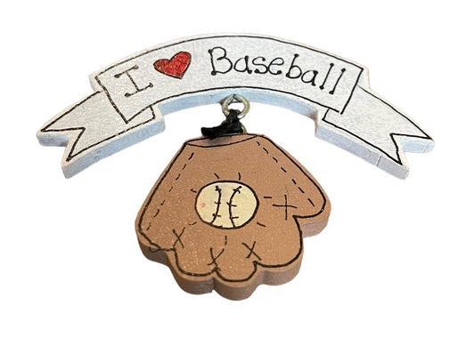 I Love Baseball Hand Painted Pin Glove and Ball Pendant Wooden