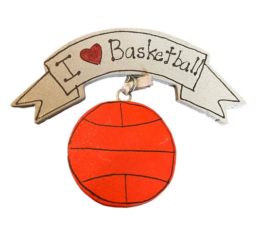 I Love Basketball Hand Painted Pin Wooden Pin Pendant