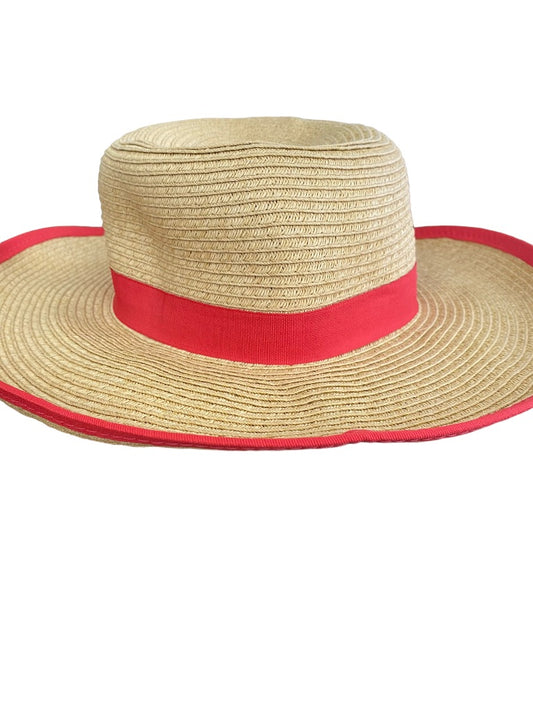 Panama Jack Sun Hat 100% Paper Packable Red Trim