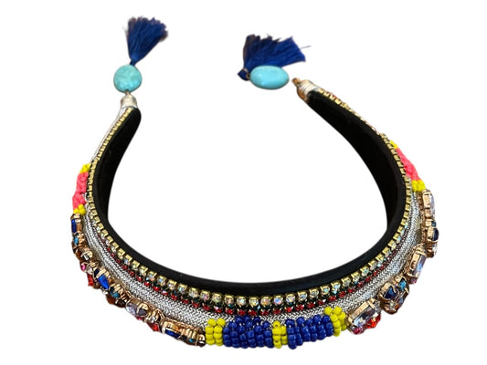 Colorful Rhinestone Jeweled Padded Headband Tassels