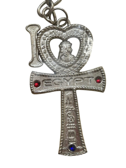 Souvenir "I Love Egypt" New Key Ring Keychain Silvertone Red