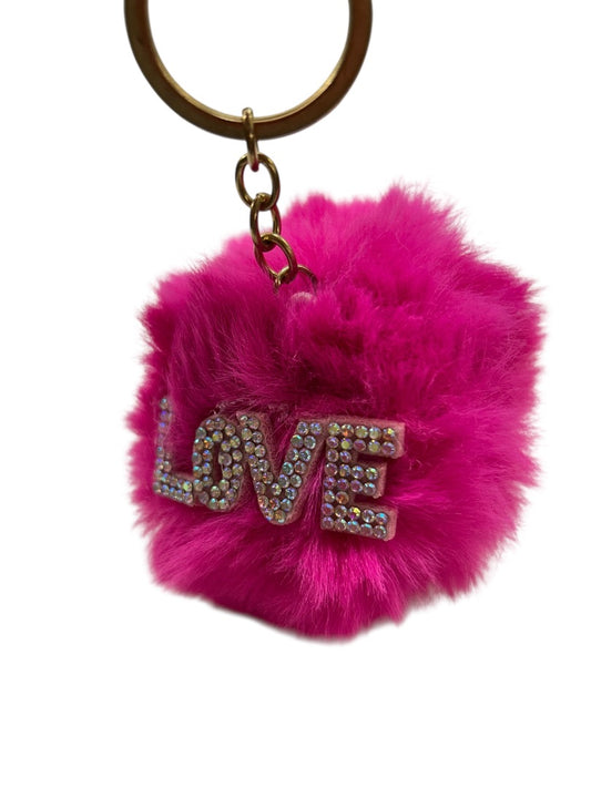 Set of 2 Puffy Plush Keyring Key Chains Red Heart Pink Love