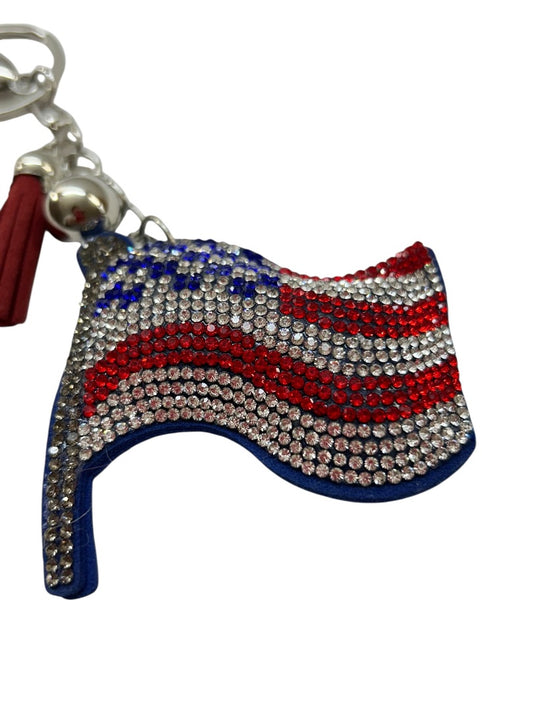 Puffy American Flag Rhinestone Keychain Key Ring 2.5 Inch