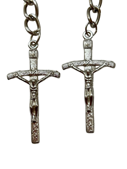 Set of 2 Silvertone Cross Jesus Religious Christian Keychain Key Rings 4.5"