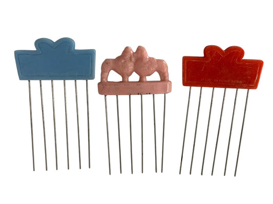 Set of 3 Vintage Hair Picks Combs Pink Poodle "Diane" Metal Teeth