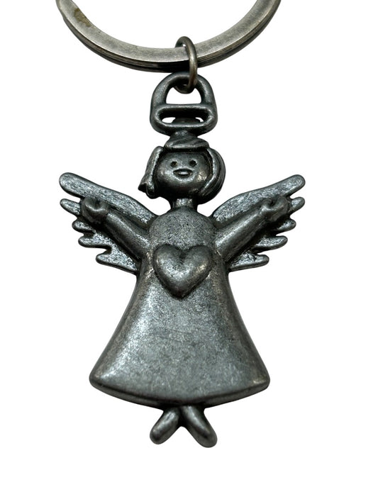 Pewter Angel Heart Keychain Key Ring Wings 3 Inch