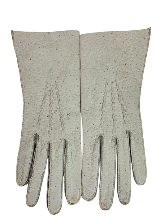 Size 6.5 Vintage Genuine Peccary Pigskin Leather Gloves Off White