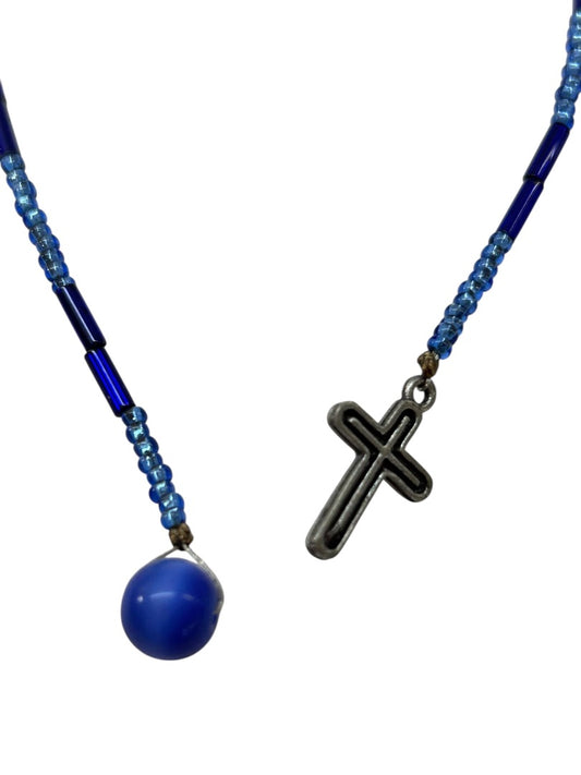 Beaded Blue Silvertone Cross Book Marker Bible 9.5 Inch