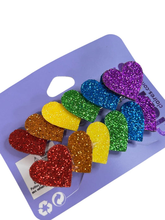 Claires New Rainbow Heart Sparkly Set of 2 Hair Clips 3 Inch
