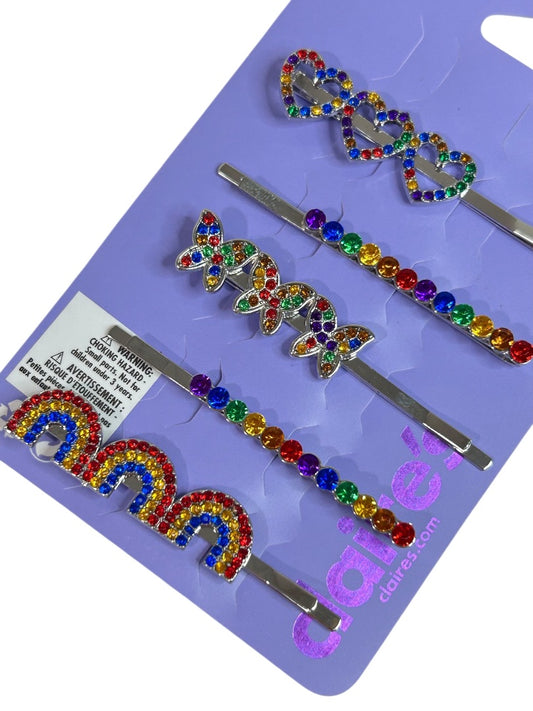 Claires New Rainbow Heart Sparkly Hair Bobby Pin Heart Butterfly
