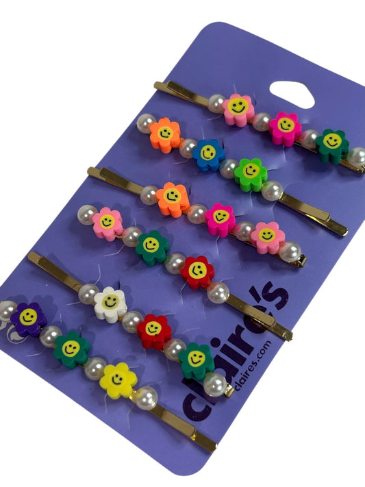 Claires New Rainbow Flower Smiley Face Bobby Pin Faux Pearl Set of 6