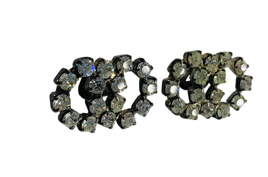 Vintage Pair Shoe Clips Rhinestone Silvertone Adjoining Circles .75 x 1 Inch
