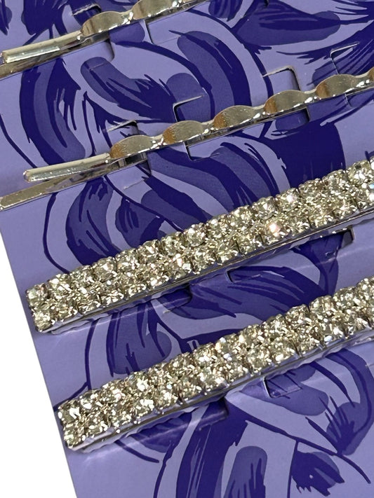Claires New Silvertone Rhinestone Pack of 6 Bobby Pins Clip Barrettes
