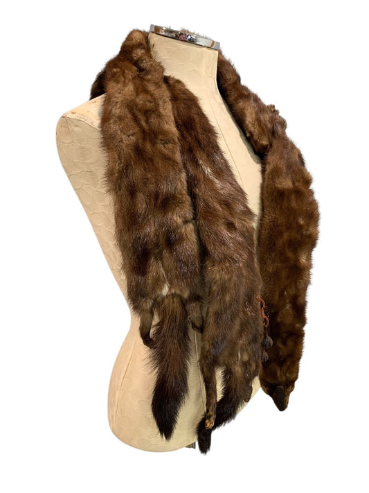 1950s Head to Tail Brown Mink Fur Scarf Vintage 54 Inch