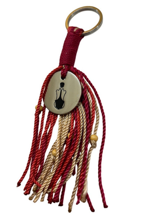 The Sac Purse Fob Tassel Red Tan Beads 6 Inch