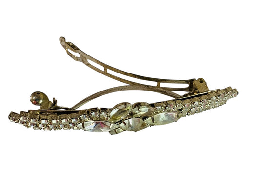 Ornate Rhinestone Barrette 3.5 Inch Vintage Hair Accessory Silvertone