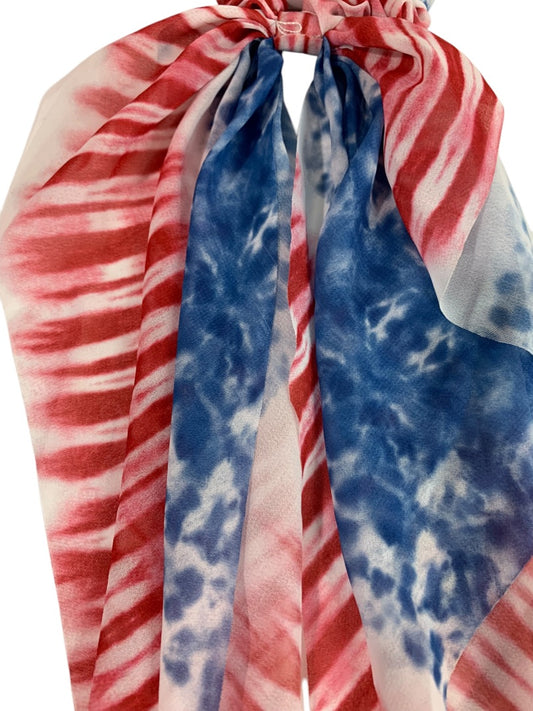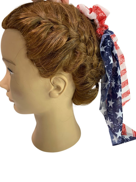 Claires New Hair Elastics Sheer Fabric Cover Train Tail Patriotic