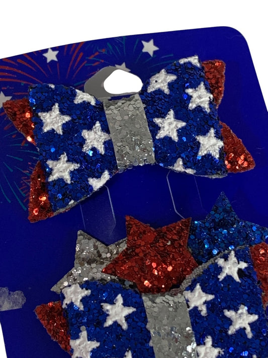 Claires New Set of 4 Patriotic Hair Bows Clip Glitter Sparkle