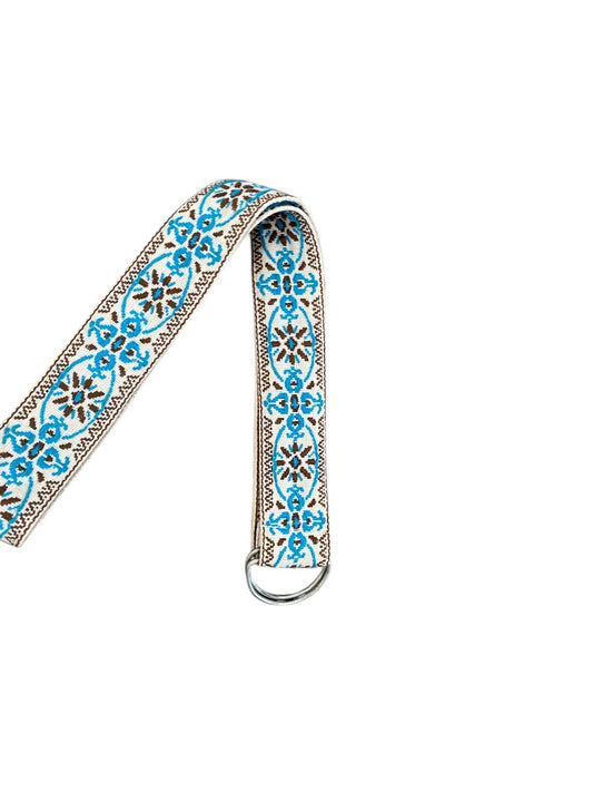 1970s Tapestry Womens Belt D-Ring Closure Teal Brown Pattern 1.75 Inch Width