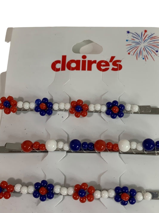 Claires New Set of 4 Patriotic Hair Bobby Pins Red White Blue