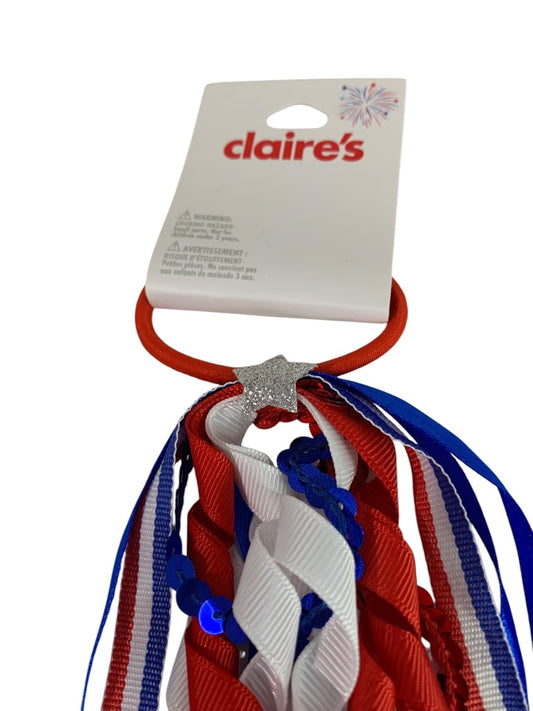 Claires New Elastic Hair Band Ribbon Curly Patriotic USA Red White Blue
