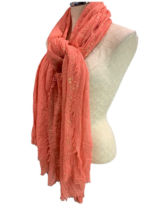 Natasha Lightweight Scarf Salmon Gold Speckles Raw Edge 33 x 84 Inches