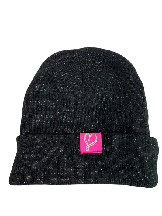 One Size Girls Black Sweater Knit Beanie Hat "Loved" Sequins