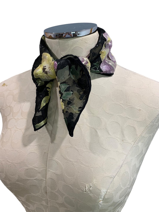 Vintage Floral Womens 19 Inch Square Scarf Textured Siky Sheer