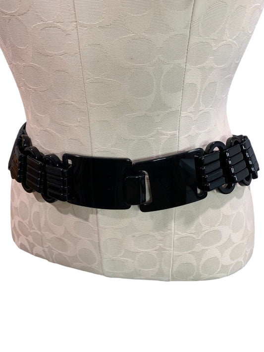 Small Sandy Duftler 1990s Womens Black Patent Leather Stretch Belt 7212