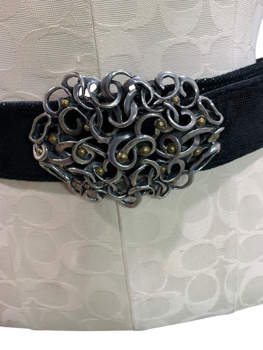 Medium Womens Vintage 1980s Reversible Statement Belt Ornate Buckle