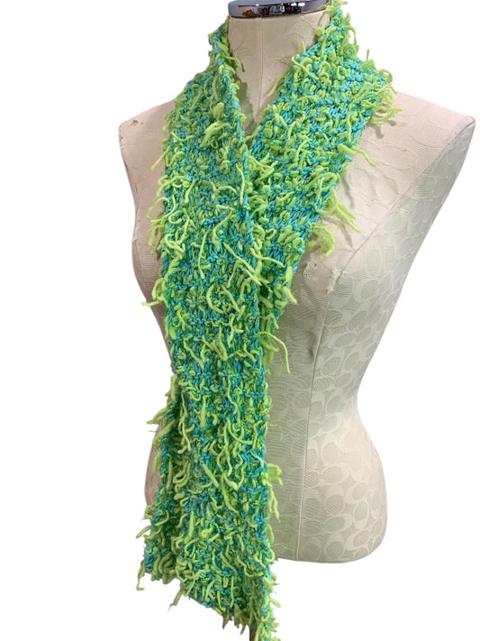 Bright Green Aqua Womens Winter Knit Scarf Shaggy Artsy 59x5 Inches