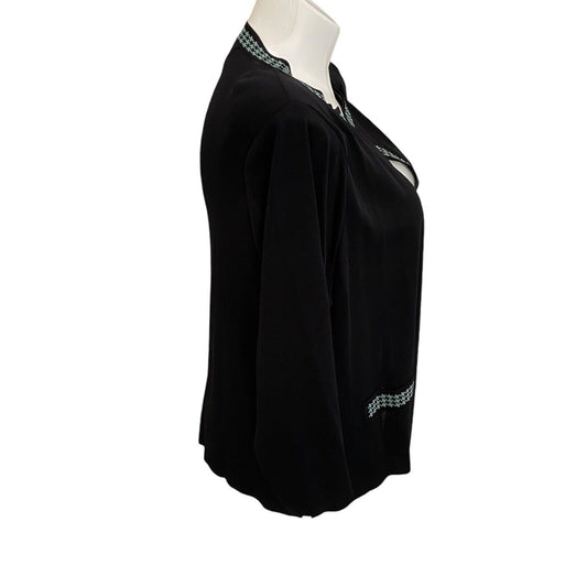 Exclusively Misook Black Open Front Cardigan Womens Herringbone Trim Petite Plus
