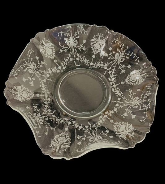 Etched Glass Bowl Heisey Orchid Sunburst 10 Inch Centerpiece Dish