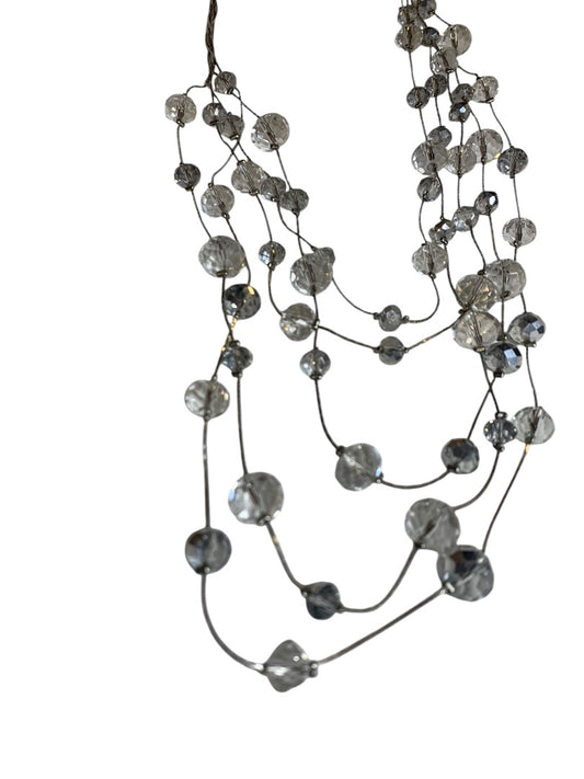Erica Lyons Silvertone Necklace 5 Strand Faceted Clear Beads 21 Inch New