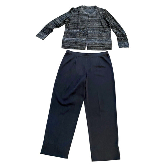 Exclusively Misook Jacket Pant Set XL Petite Metallic Jacket And XL Black Pant