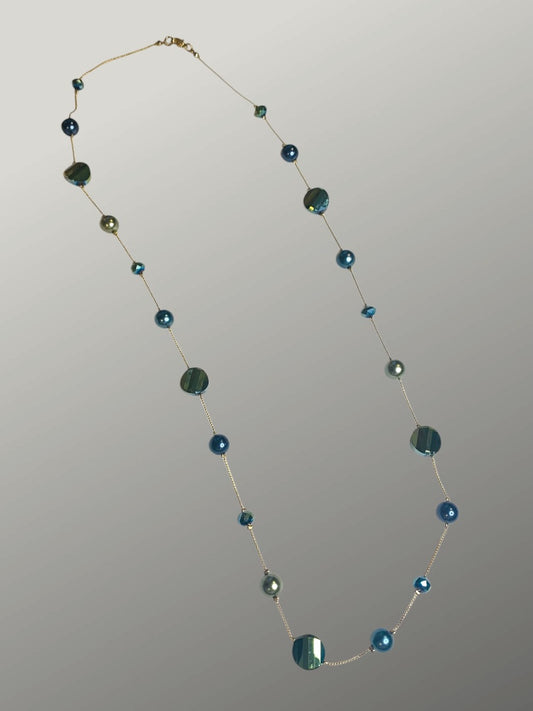 Goldtone Blue Green 32 Inch Strand String Necklace Lobster Clasp