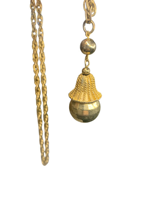 Goldtone Vintage 27 Inch Pendant Necklace Retro 2 Inch Drop