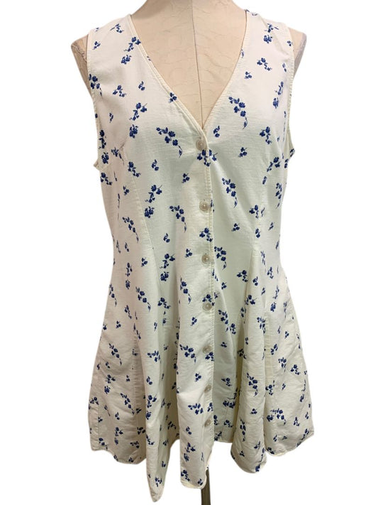 Large Universal Thread A-Line Sleeveless Button Up Dress Ivory Blue Floral
