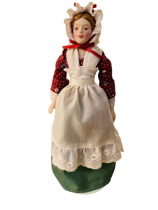 1987 Avon Fashion of American Times Porcelain Doll Early American 8" with Stand