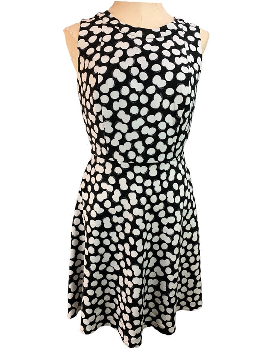 10 AB Studio Black White Dot Sleeveless A-Line Dress Lined Bodice